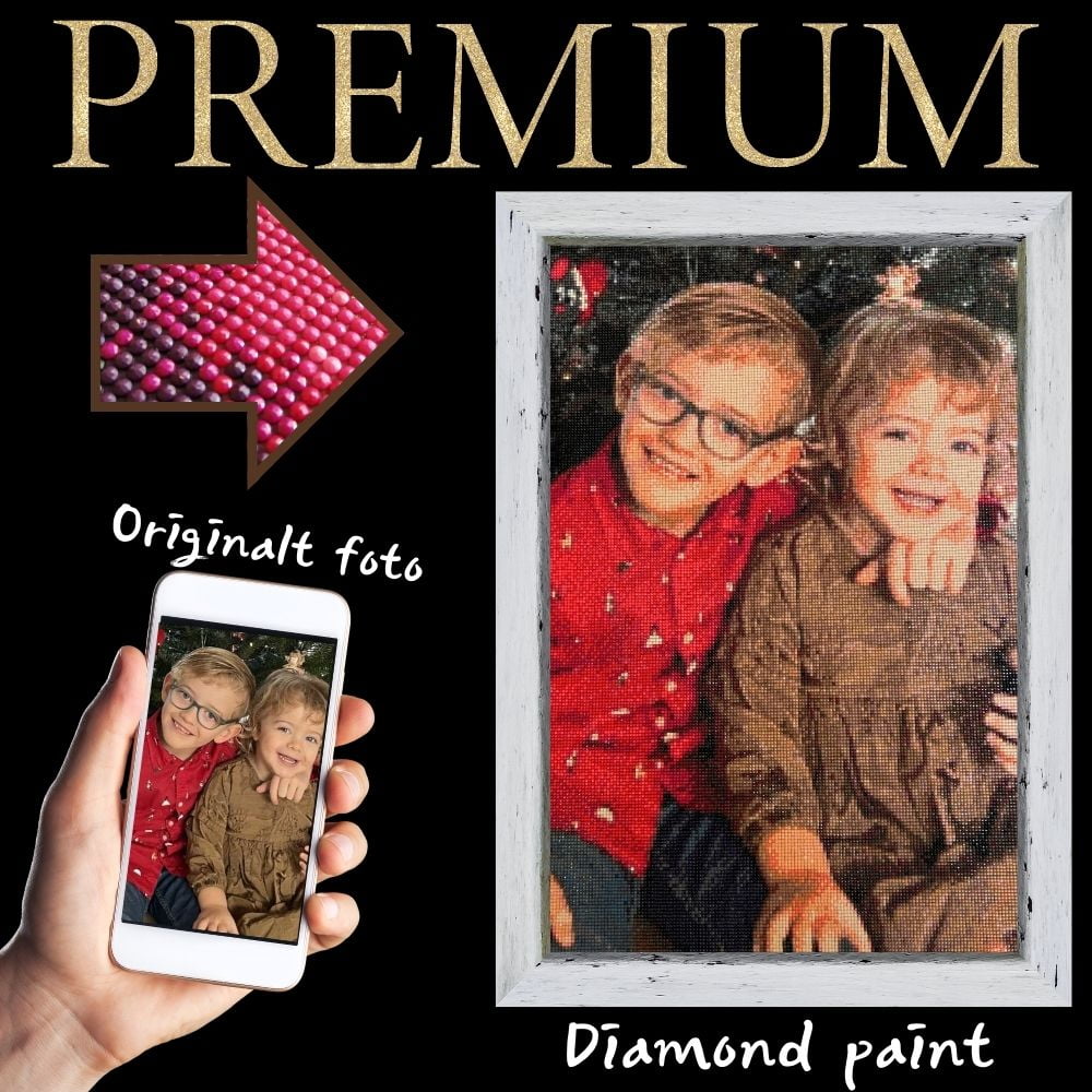 Når du bestiller et ‘eget foto som diamond paint’ ved os, kan du forvente høj kvalitet, kort leveringstid og mulighed for en påsat ramme.