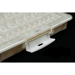 Smart opbevaringskasse med låg på, hvor der indeni er 30 tic tac-bøtter til opbevaring af diamond paint.