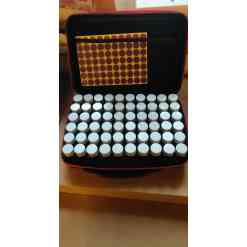 Smart opbevaringstaske med håndtag til dine diamond paint-diamanter. Tasken indeholder 60 bøtter, der hver kan indeholde 20 ml, hvor du kan opbevare dine diamanter i.